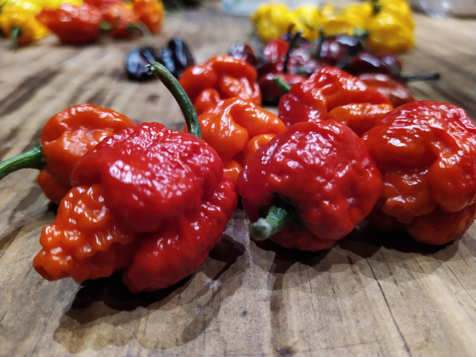 I couldn't talk .. im downing ice like no tomorrow and milk .. and I tell him its on the bed .. he grabs it .. Me .. It's not the one I thought it was .. it was the Triple Threat mega hot .. OMFG what have you done Michael says ... Me something really frigging stupid .. I didn't think it was a hot one .. I thought it was one of mine .. how bloody WRONG I was .. I made a very big mistake tonight .. big Big HUGE ... please never reach for Budgies Jerky in the dark .. I never will again ... Thats no 3 on the rating scale .. that's freaking 3,000 out of 10 ... bloody hell .. This one was meant for Michael .. clearly .. and I'm not that stupid normally .. I stay away from his chilli gear. I can confirm .. I am alive .. barely .. but I'm here .. geezuz .. no matter what you imagined, you needed to see my for real to see how fk"d up I was .."